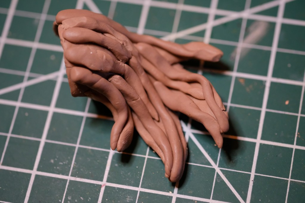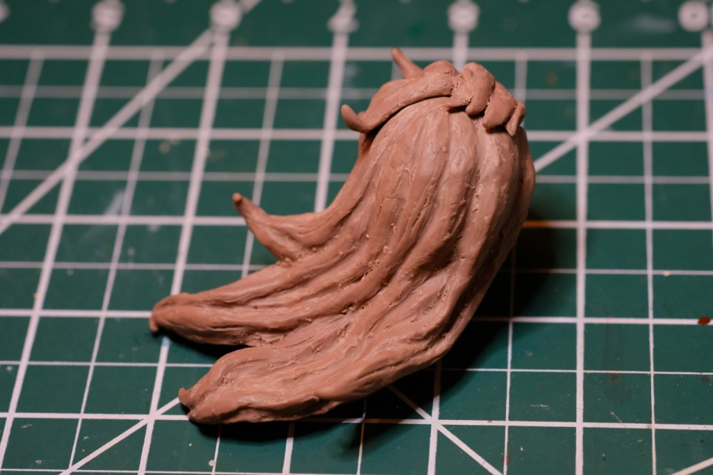 Once I figured out the rough form of the hair, I added some clay strands over the surface to give it more of a, well, hair-like appearance.