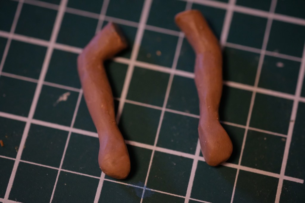 Most of the sculpting I’ve done on Yume-chan so far has been additive: creating a basic form and then layering additional clay on top of that to refine the details, making adjustments with minimal removal of material. For the hands, however, I worked in the opposite direction, starting with a larger piece and carving it down to reach the level of detail I wanted. I find adding clay to be frustrating at this scale; it’s hard to handle and it’s hard to attach pieces without causing them to deform. Some day I swear I’ll get good at it.