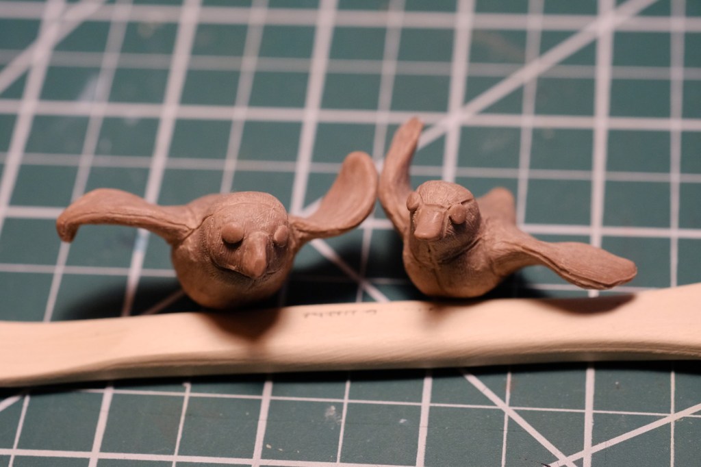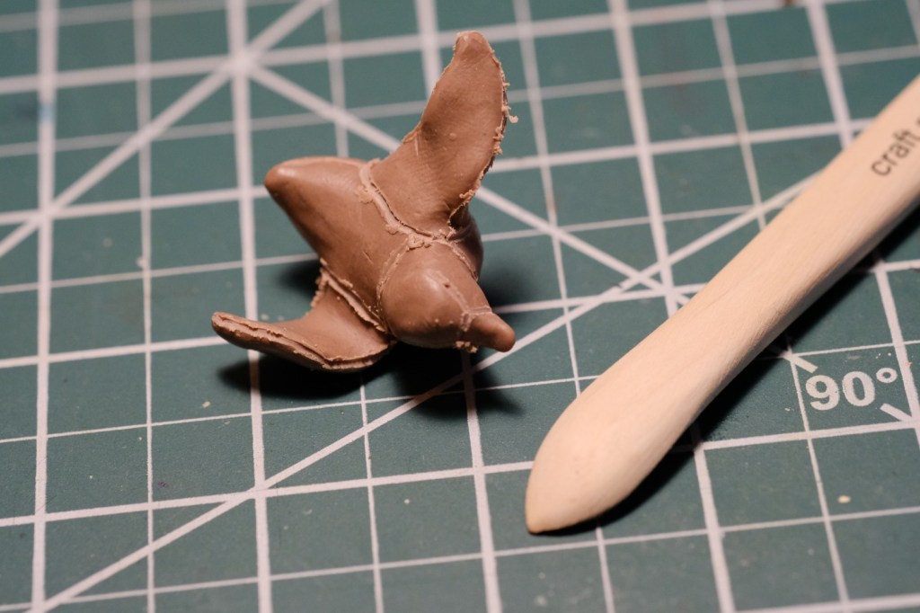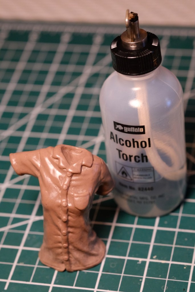 I also smoothed out the remaining tool marks and other rough parts of the sculpt with an alcohol torch. Basically, this involves melting the surface of the clay just enough to let the surface tension pull away all those little ridges and grooves. It’s a hell of a lot less effort than trying to burnish the entire thing manually, and the flame emitted by the torch is controlled and precise enough that you can still achieve some level of detail work. The only downside is that it works too fast sometimes, and it’s easy to melt away details and over-soften sharp edges. Which, well, I might have done in a few places… 😬