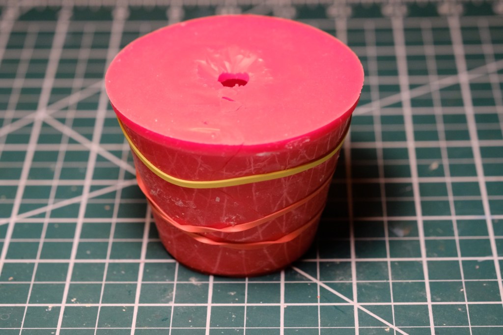 You form the mold using your prototype and some sort of container. You don’t want the container to be so small and tightly-fitted to your item that the mold walls end up thin and overly flexible, but you also don’t want it to be so large that you end up wasting tons of silicone filling in all that empty space. This stuff’s expensive! In my case, a disposable cup seemed to fall right into that Goldilocks zone.