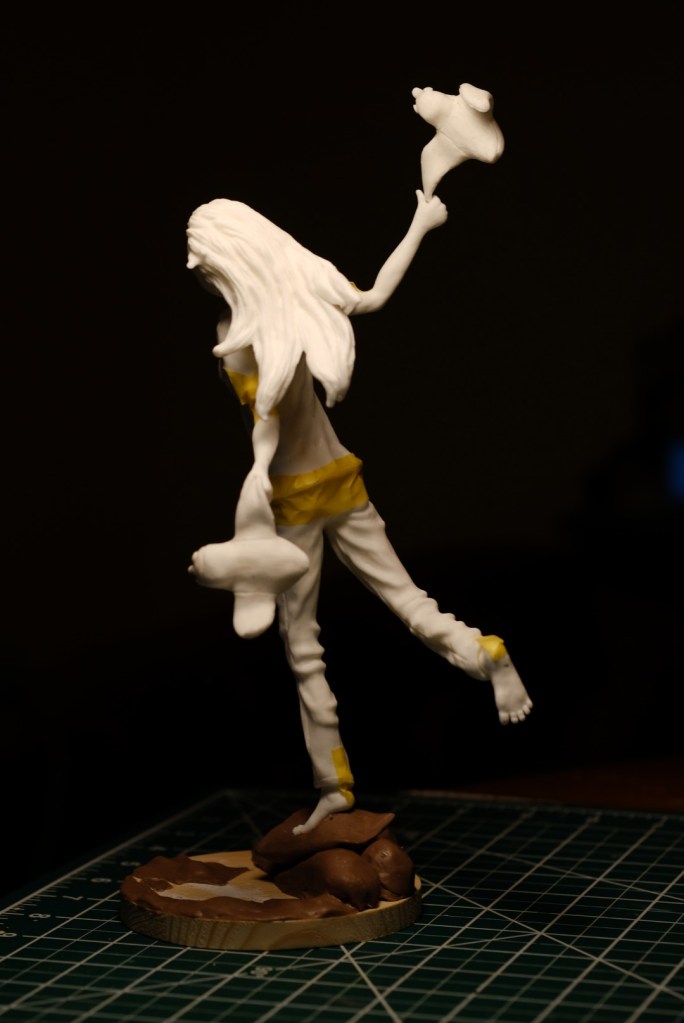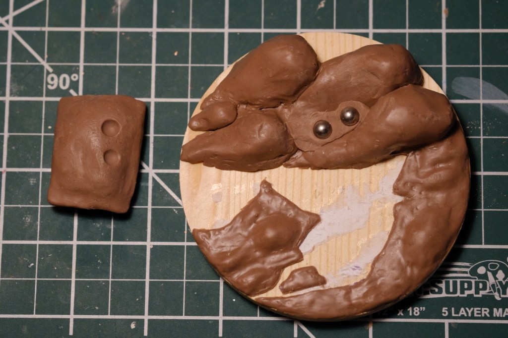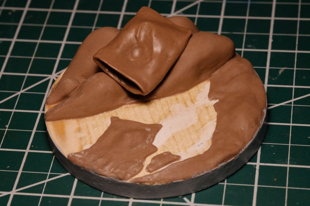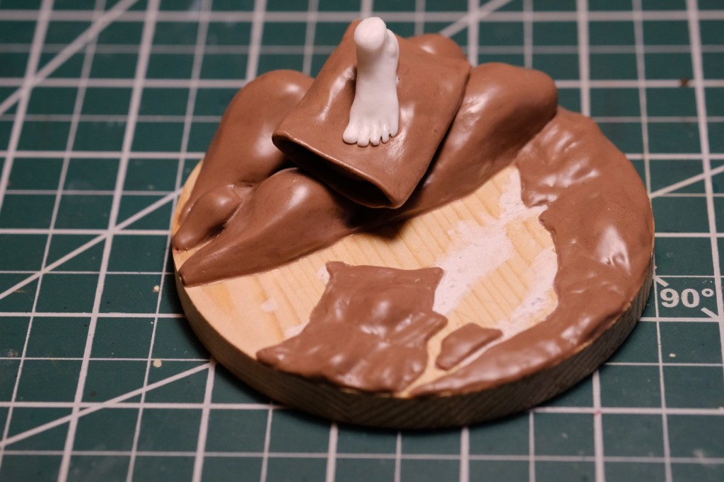 Now that I’ve cast the main body of Yume-chan into resin, I can finally finish the base. I didn’t want to finalize the mounting position until the main sculpt was done, just in case I needed to make any adjustments to the angle of Yume-chan’s pose. In hindsight, I should have taken similar precautions with some of the other parts too, but that’s a different story…